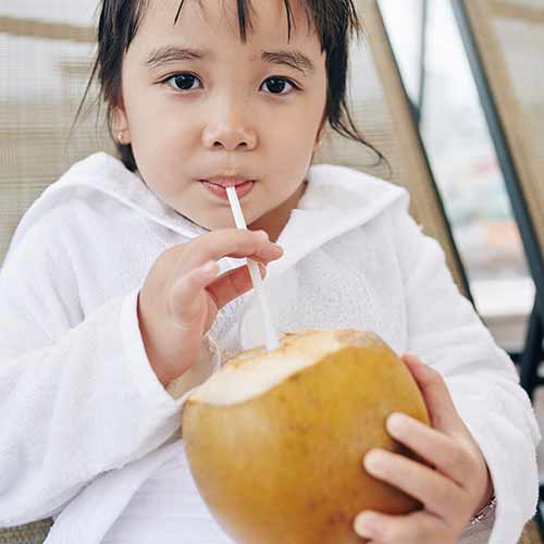 Tous les enfants n’aiment pas le goût, mais essayez-le et si le vôtre l’aime, l’eau de coco est douce et contient du sucre, mais c’est du sucre entièrement naturel.