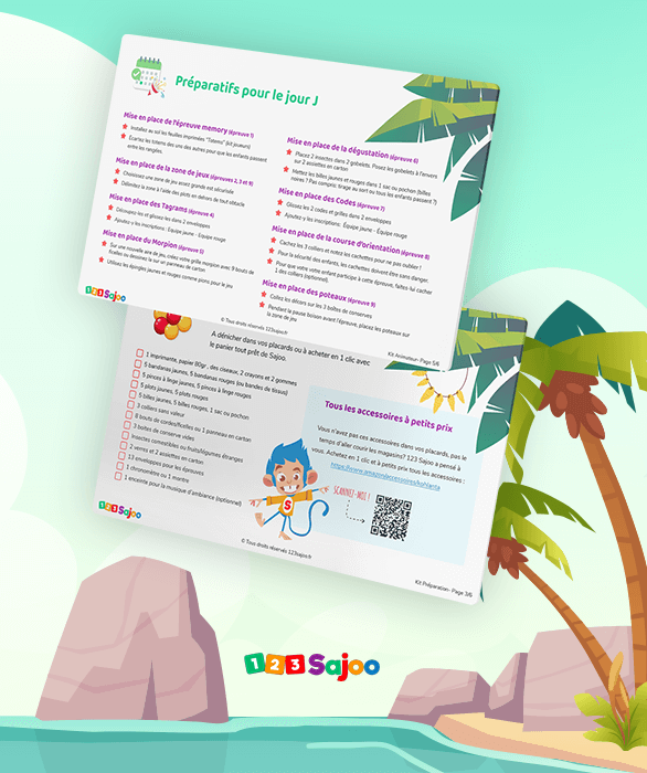 Notre jeu à imprimer "L'ile des aventuriers" vous permet d'organiser une fête d’anniversaire clé en main. Nos 3 kits sont détaillés, complets et regorgent de conseils. Facile et simple à mettre en place, nous avons tout prévu pour vous facilitez la vie.