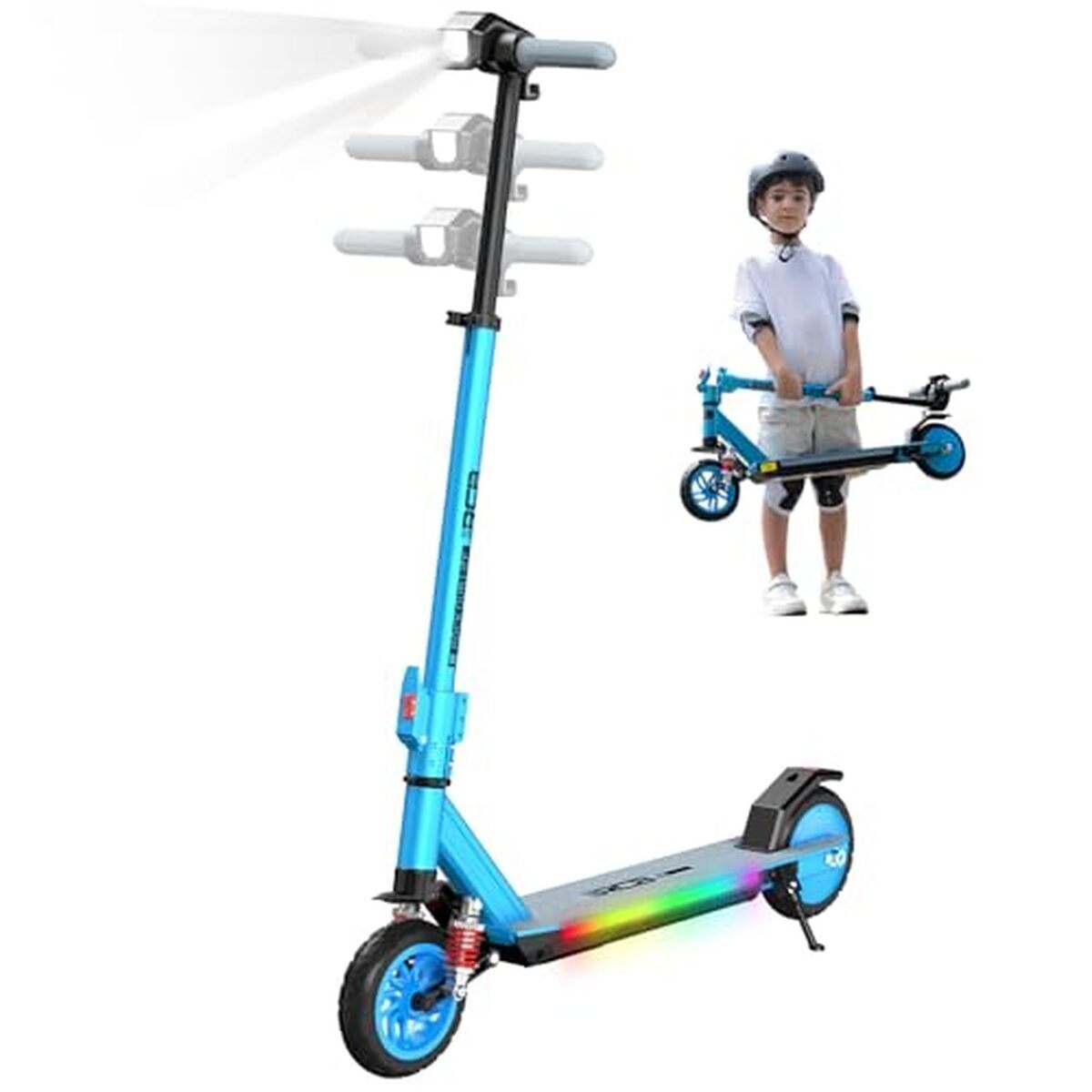 • RCB R12 Trottinette électrique Enfant âge 6-12 Ans,jusqu'à 15 km/h & 10 km, 6,5" Pliable Trottinette Electrique, Deux Types Freins, Lumières colorées, écran LED, Cadeau pour Enfant